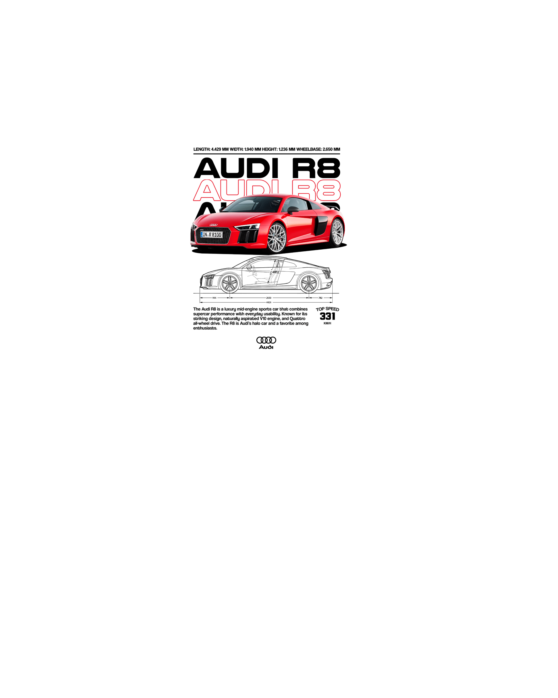 Audi R8 V2 T-shirt (Various Colors and Sizes)