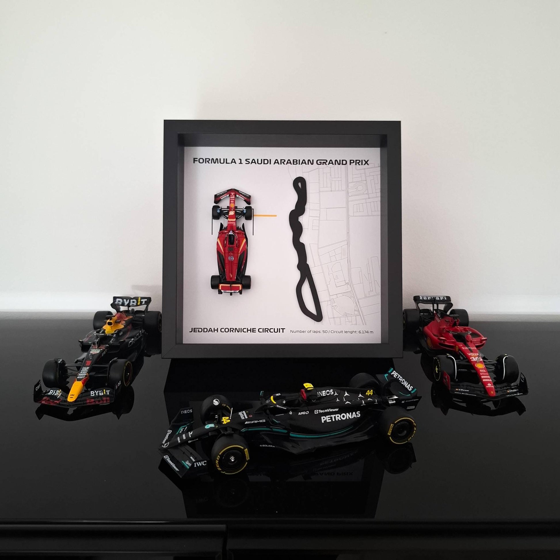 Jeddah Corniche F1 Framed 3D Art: Plexiglass 3D Track with Formula One Car Model
